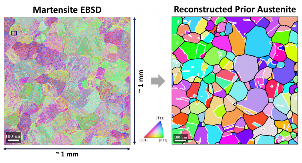 Magnetic field-assisted processing is a developing, energy-efficient alternative to current heat treatment processes in the steel industry, which leverages a high static magnetic field to improve processing outcomes. Attempts to precisely tailor steel microstructures using magnetic field-assisted processing are hindered by poor understanding of how the field alters microstructural evolution. In this project, we use electron backscatter diffraction to examine martensite morphologies and reconstruct prior austenite microstructures to reveal the effects of processing under varied magnetic field strengths, annealing times, and heating methods.